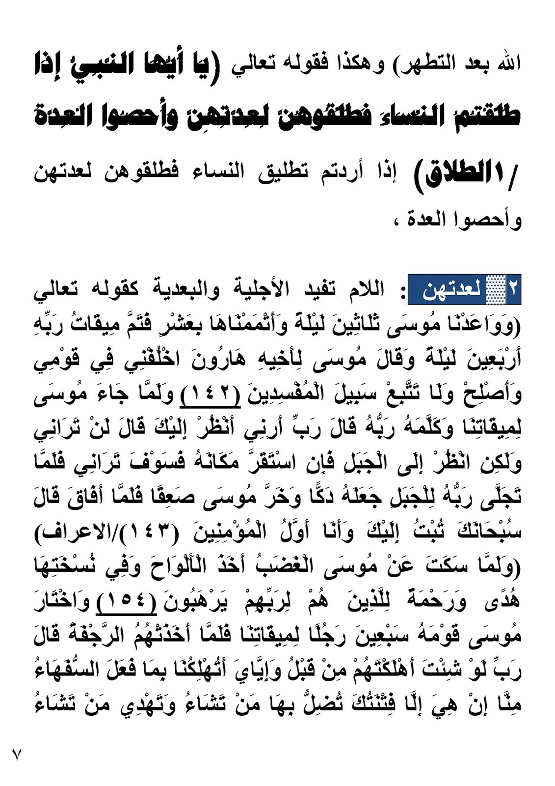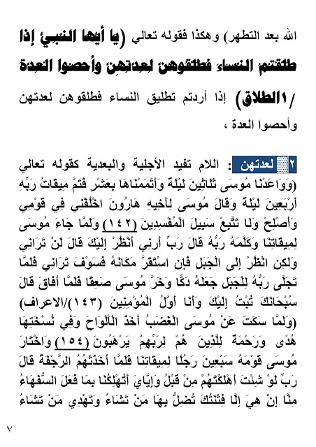 المغزي من ألفاظ سورة الطلاق المستعملة في السورة{ في ضوء الفرق بين{أداة}لام انتهاء الغاية وظرف انتهاء الغاية{بعد}}