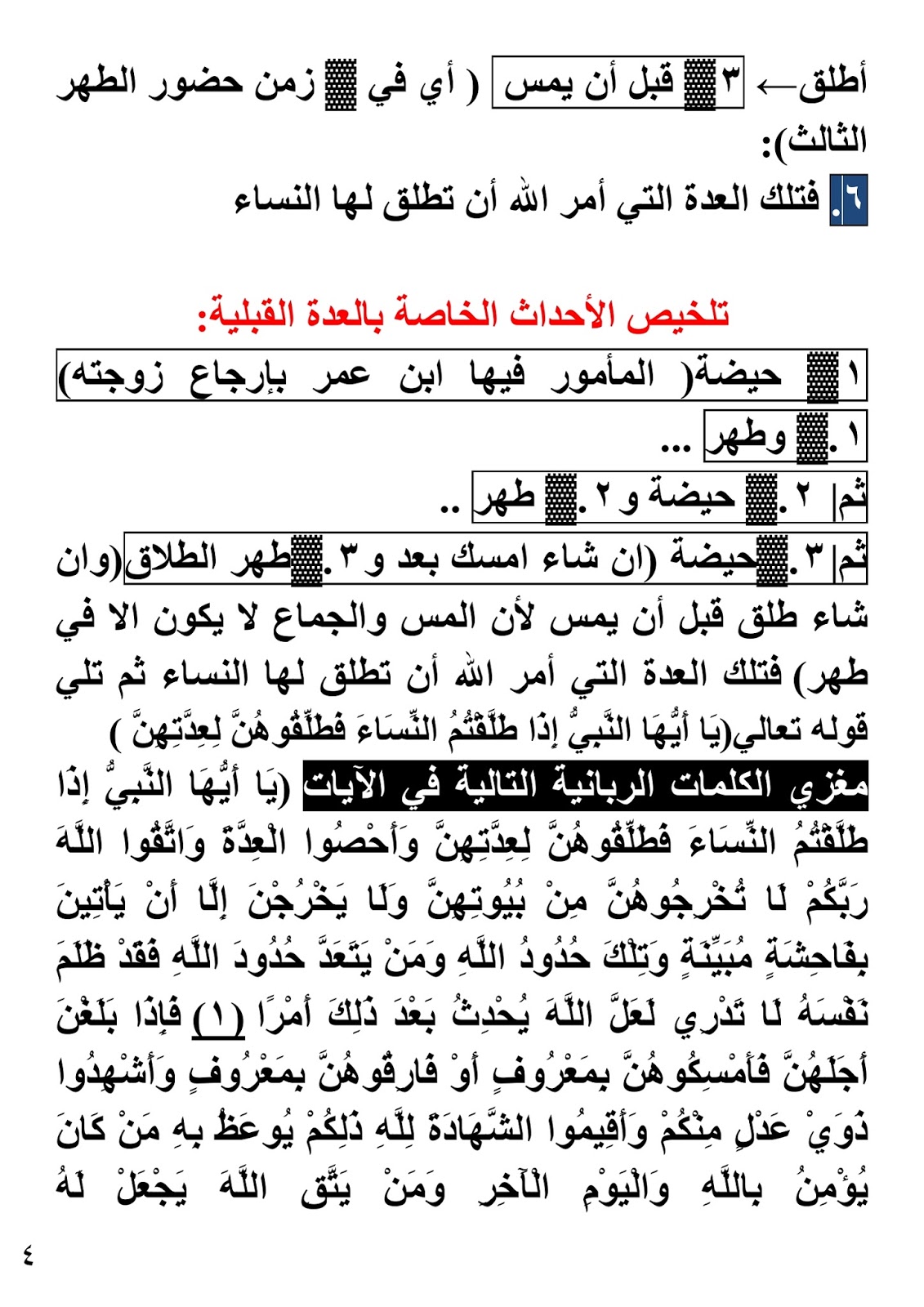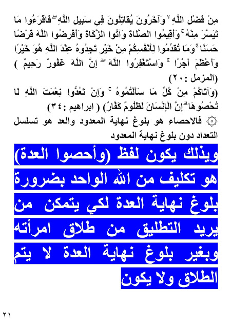 4.بينما لام البعد تحيل ذلك التراخي الي اللإمتناع يعني تفيد تحقق الحدث لا اقول في تو انقضائه وحسب بل تواً دونما أي تراخي ولو لثانية من التراخي.. لكن بعد تحمل في ثناياها امكانية التراخي الي اخر معناها فقولنا بعد وصولك تحمل امكانية التراخي للاسترخاء اولا والتريح من عناء المشوار واستراحة الواصل من مشواره يوما او ساعة او يزيد او ينقص لكن لام البعد تفيد تحقق الحدث توا بلا اي تراخي{والحدث المقرون بلام البعد هو إما الامساك او الطلاق توا توا دون تراخي} لان الله تعالي من منتهي عدله وقسطه ان لا يظلم المرأة ولو بجزء من التراخي فحقها ان لا تنتظر الا عدة تامة دون زيادة عليها ولو دقيقة من ساعة